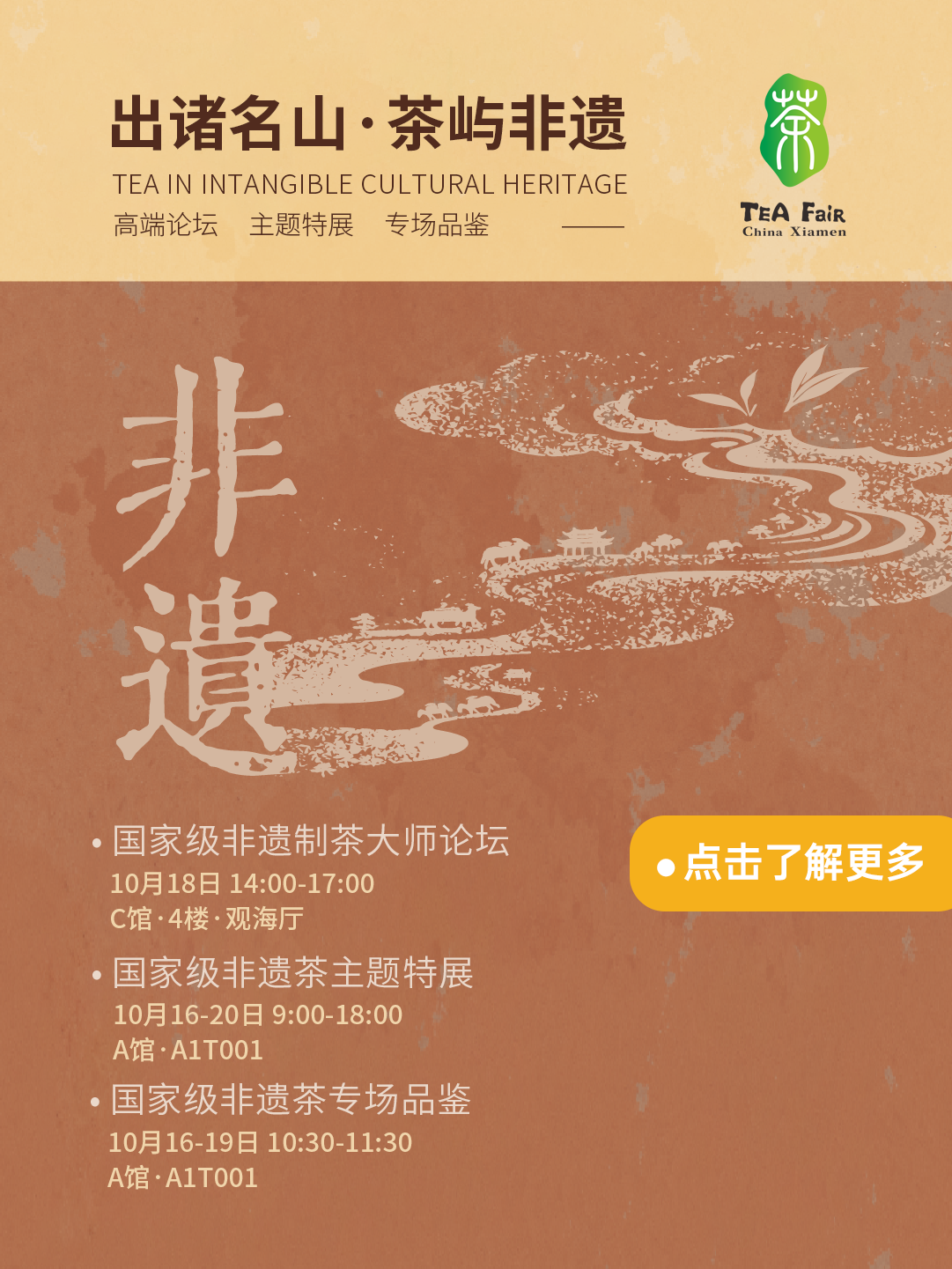 国家级非遗茶主题系列活动 :国家级非遗制茶大师论坛、国家级非遗茶主题特展、国家级非遗茶专场品鉴